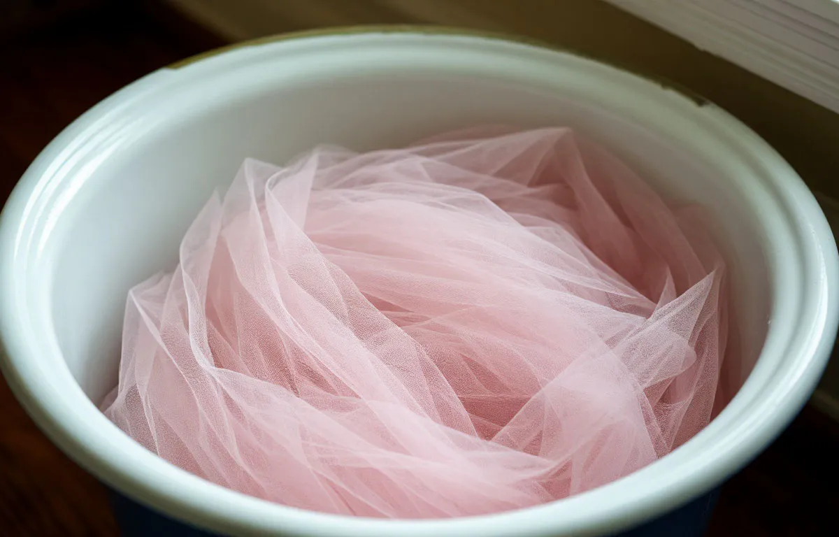 Занавески отправляются в раствор на 2 часа. Без трения, без усилий. Просто полежать. Потом — в машинку. К режиму «рубашки» или «деликатный» (40 градусов, отжим — 800). Средство — мягкое, без отбеливателя. Подойдёт «Кашемир» или любой гель для тюля. Для смягчения — пара ложек соды или «КалМагона».