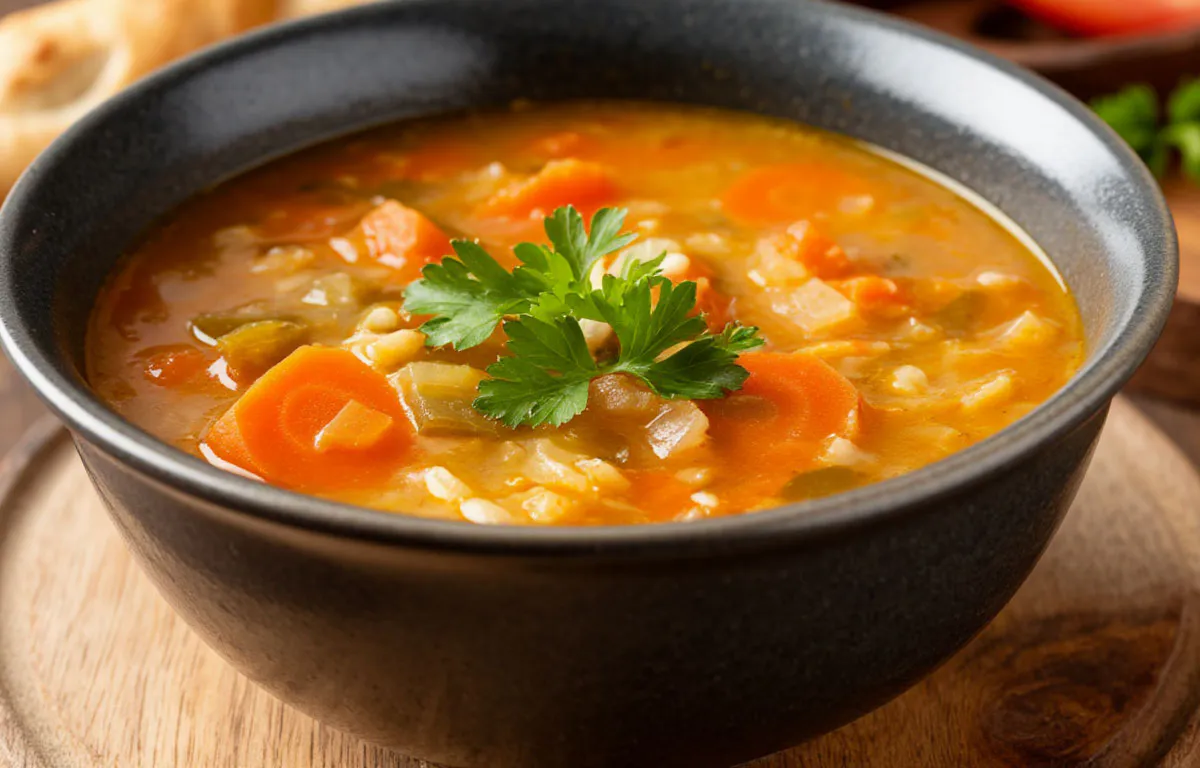 Суп не обязательно должен быть прозрачным. Хотите яркости и глубины вкуса? В пассеровку — ложку томатной пасты. Протушите в ней овощи. Добавьте щепотку сахара — для баланса и цвета. Суп получится густым, тёпло-красным, очень аппетитным.