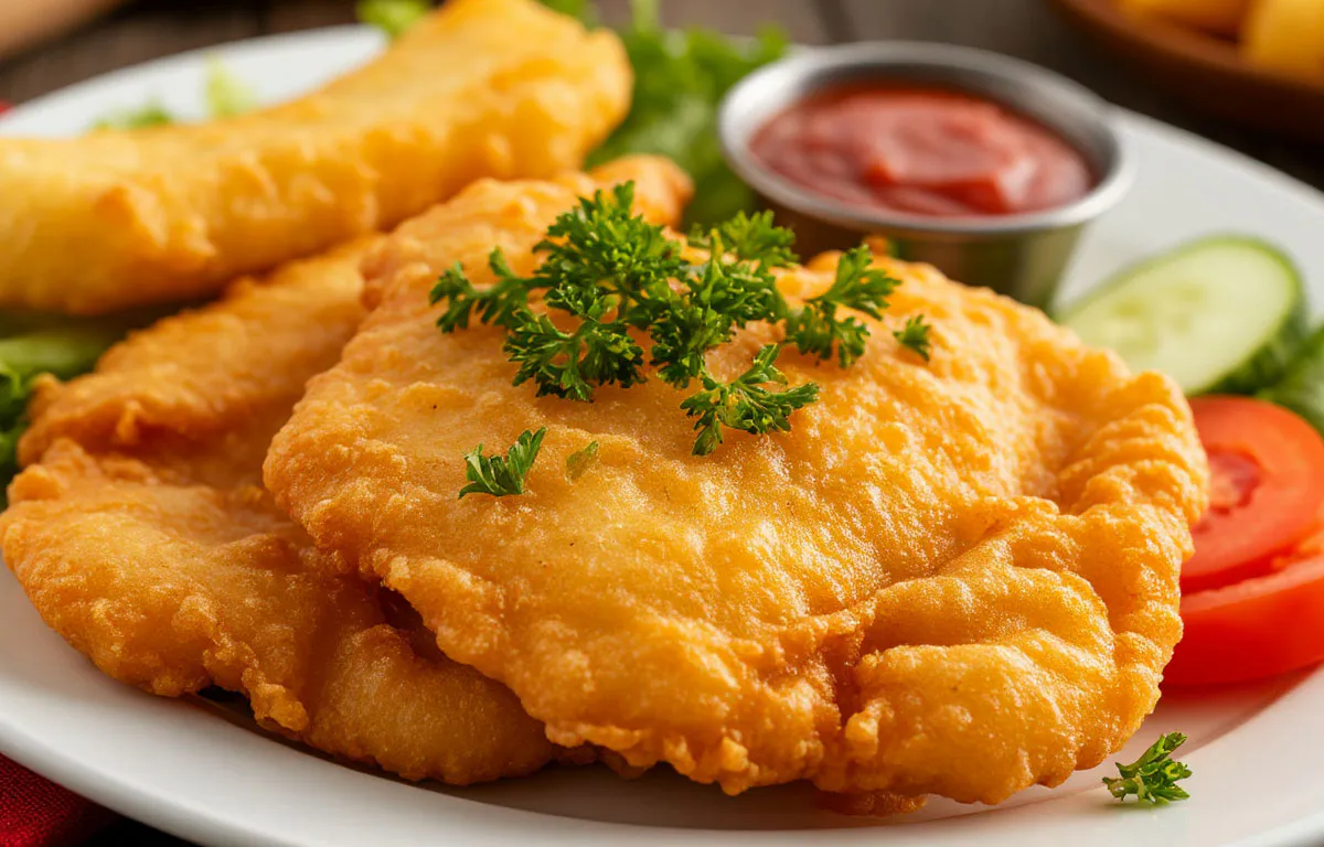 Рыба отправляется в кляр и отдыхает. В холодильнике минут тридцать. Холод делает своё дело — кляр лучше схватывается, корочка получается тонкой и хрустящей. Потом сковорода, масло, средний огонь. Переворачивать стоит аккуратно — как только низ подрумянится. Рыба готовится быстро, не стоит отходить. Аромат на кухне стоит такой, что ждать тяжело.