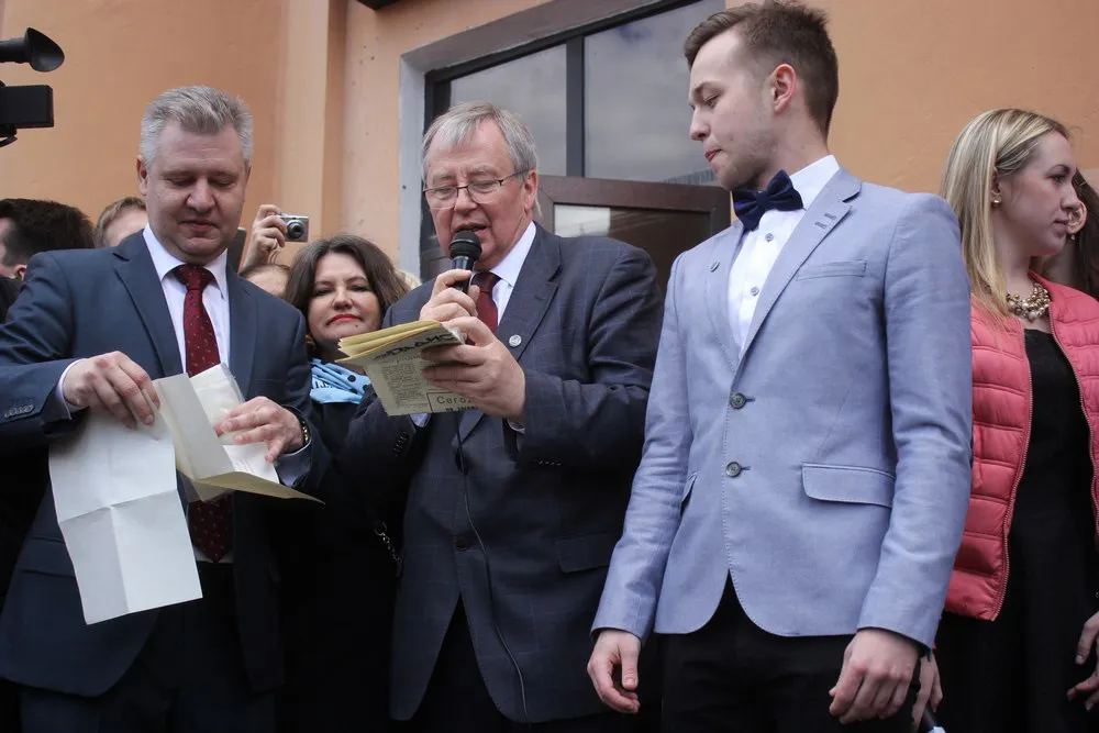 Пока неизвестно, что напишут современники потомкам. А вот послание из прошлого после извлечения из капсулы вслух зачитали студенты. Письмо было помещено в капсулу-сейф и забетонировано в стене первого этажа главного учебного корпуса. На металлической табличке было выгравировано: "Вскрыть в мае 2017 года".