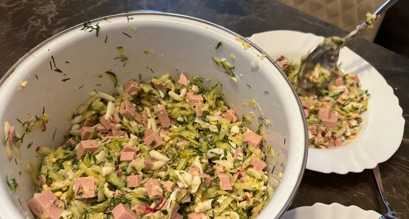 Окрошка с крабовыми палочками на квасе — свежий летний рецепт вместо надоевшей классики.