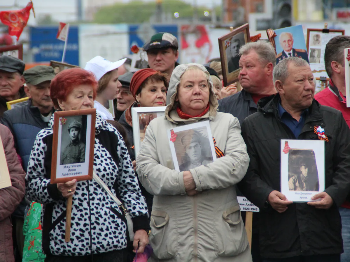 Несмотря на пасмурную погоду и холод, жители города присоеднились к "Бессмертному полку".