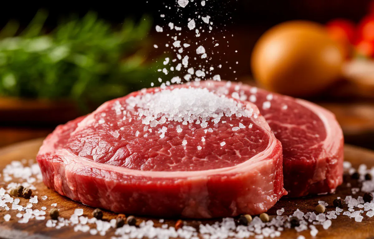 Если посолить мясо заранее, особенно когда речь идет о жарке или запекании без всяких маринадов, соль начинает вытягивать влагу из волокон. В итоге мясо может потерять сок, стать сухим и жестким — не самая желанная картина для любителей сочных блюд. При этом соль в начале почти как маленький хитрый злодей, который крадёт самый ценный ингредиент — сок.