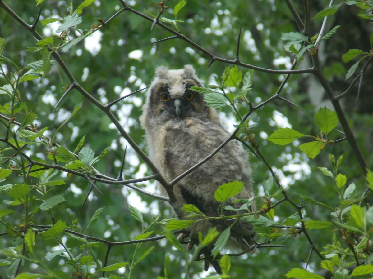 - Выпал филинёнок из гнезда, сидит пищит за окном на боярышнике,очень жалко его. Орнитологов тут нет случайно? может его можно как - то спасти. Летать он не умеет. В гнезде на сосне есть еще два птенца, а поблизости летают два филина, - написала автор поста.