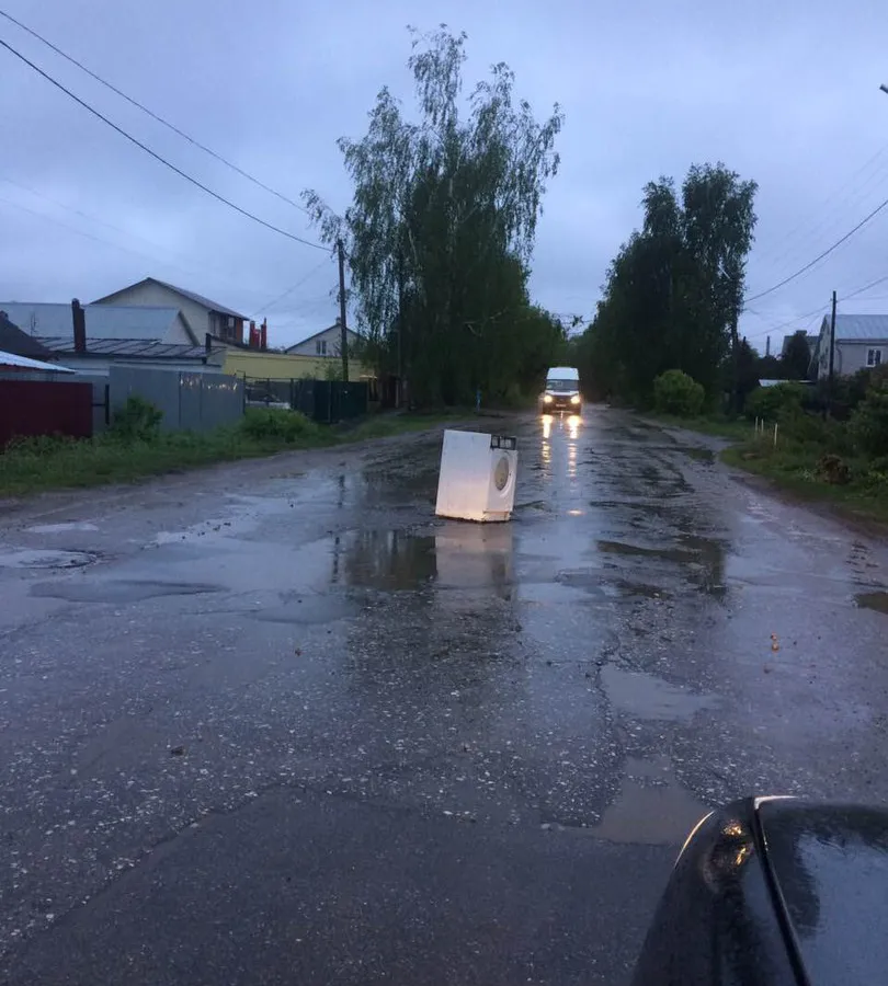 С каждым годом рязанцы становятся все более изобретательными: раньше в ямы на дорогах сажали цветы, вставляли палки, обводили мелками, а теперь доросли до того, что поставили стиральную машину посреди проезжей части.