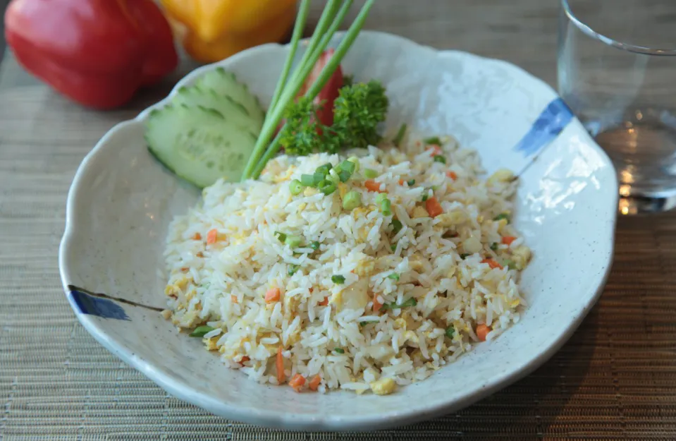 Рис (лучше басмати) тщательно промывается до прозрачности. Морковь режется кубиками, обжаривается, добавляется горошек — и вся эта овощная основа готовится буквально 2–3 минуты.