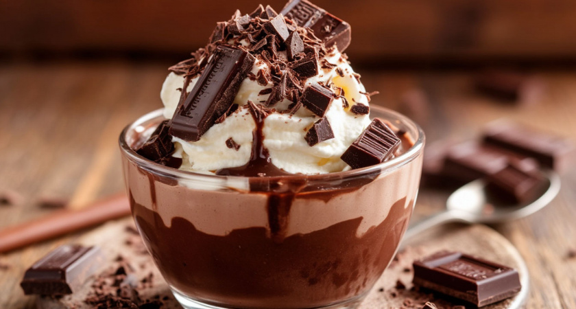 Первым делом — холодные сливки. Не просто из холодильника, а такие, чтобы от них тянуло февралём. 250 мл, жирность — не ниже 33 %. В них аккуратно, но уверенно просеивается какао. Без горок и комков. Примерно 30 граммов — и этого вполне достаточно, чтобы не перебить сливочность, но дать вкус.