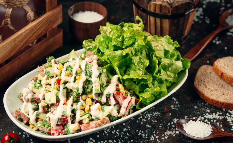 Помидоры — сочные, но с ними есть нюанс. Если нарезать слишком мелко, пойдут соком, и салат получится больше похожим на суп. А значит — аккуратно, крупными кубиками, без фанатизма. Чеснок — по вкусу, не обязательно пугать всех стойким ароматом. Если и добавлять, то лучше не в общую чашу, а прямо в майонез — получится заправка с характером. И да, щепотка соли в заправку тоже не помешает.