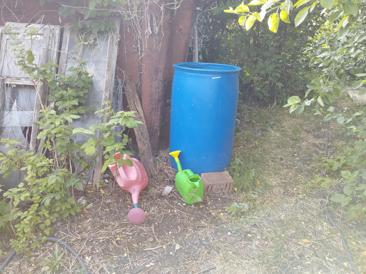 Кстати, если в хозяйстве завалялась ещё одна такая бочка — можно сделать двойной резерв. Лето ведь длинное, а дождь, как назло, не по расписанию.
