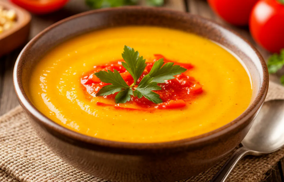 Сытный кукурузный крем-суп с паприкой — яркий и пряный: готовится быстро, съедается — с удовольствием