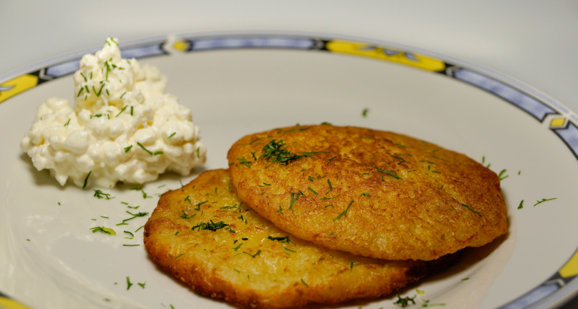 Если хочется разнообразия, то к оладьям можно добавить творог, зелень, грибы или куриный фарш.