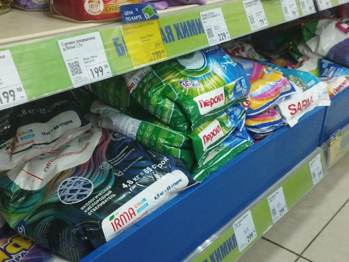 Товары зарубежного производства — 5 ТМ: Республика Беларусь (2): «Мара», «Чайка»; Турция (2): ABC, Peros; Китай (1): Tide.