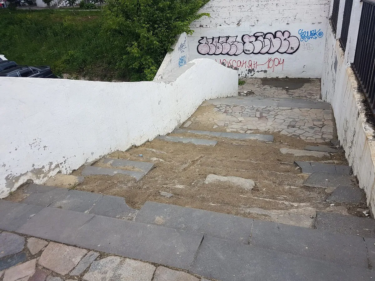 Мост на Маяковского долгое время в аварийном состоянии. После жалоб людей, что зимой там горка и падают, мост частично закрыли в 2015 году. Оставшаяся часть ступеней также рассыпалась. В дождь вода огромным потоком течёт с моста по ступеням размывая их, тротуар и насыпи внизу. В администрации, похоже, просто закрывают на него глаза ! И это центр города !, - пишет пользователь группы "Новости Рязани Вконтакте".