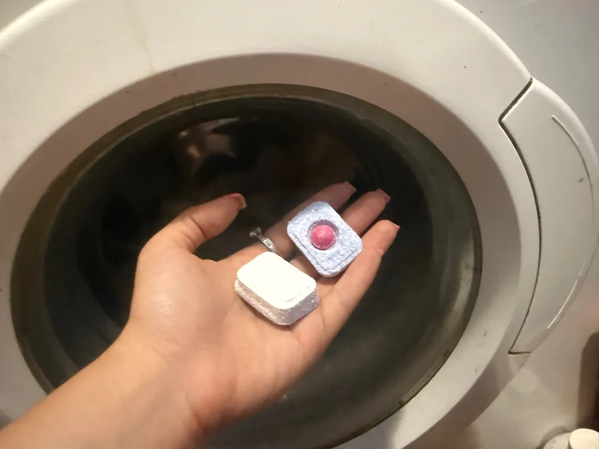 Теперь нужно очистить части стиральной машины, до которых тяжело добраться. Возьмите 2 таблетки для посудомоечной машины и положите их в барабан. Во время такой чистки оставьте барабан пустым.