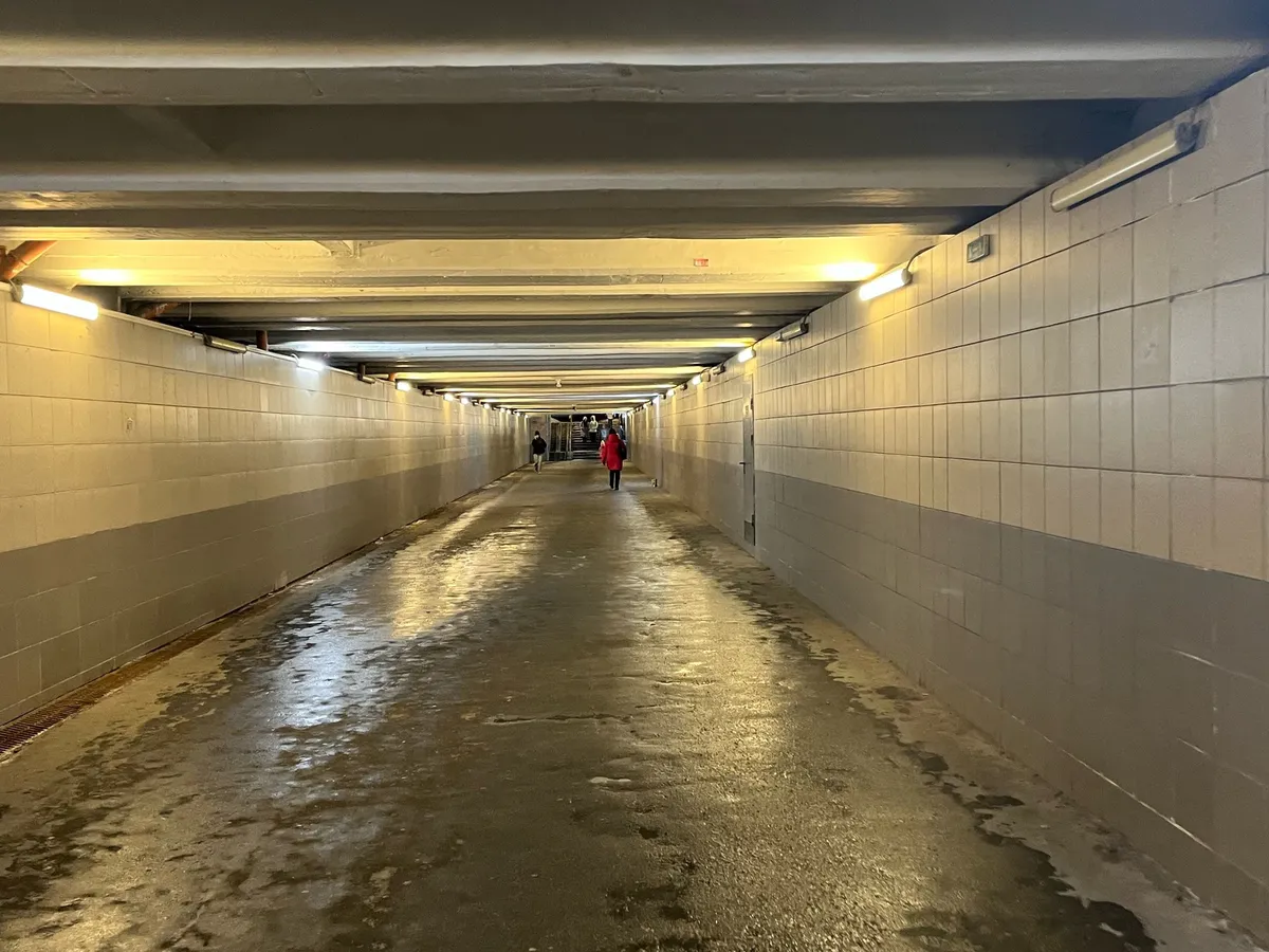 Вместо того чтобы быть безопасным и удобным местом, переход больше походил на свалку: повсюду валялся мусор, стены были разрисованы вандалами, а светильники не работали, оставляя людей в полной темноте.