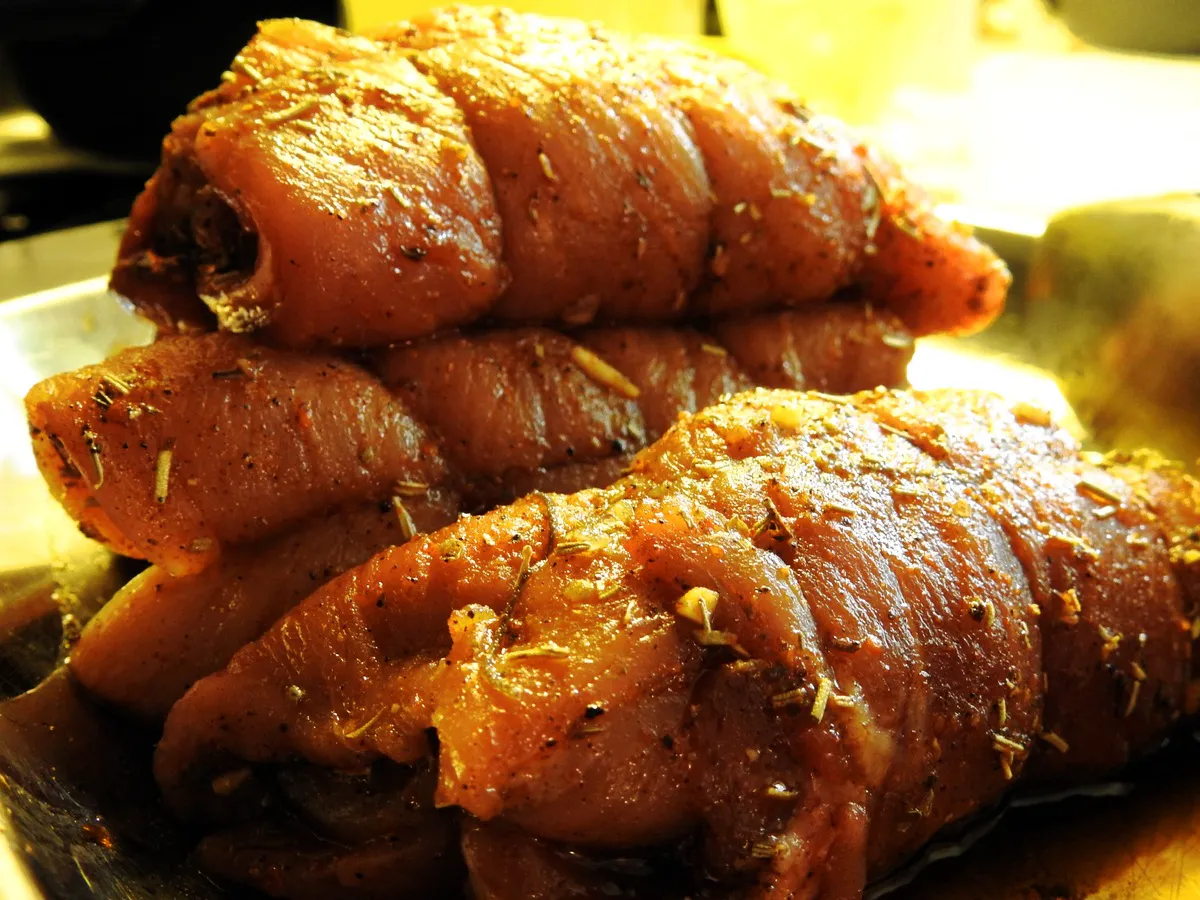 “Для их приготовления следует взять 600 г свиной шейки, ее нарезать тонкими ломтиками. Отбить и натереть чесноком, посолить, отложить. Далее нарезать лук и 400 г маринованных шампиньонов. Все смешать. Добавить томатной пасты и обжарить смесь”, - говорится в публикации.