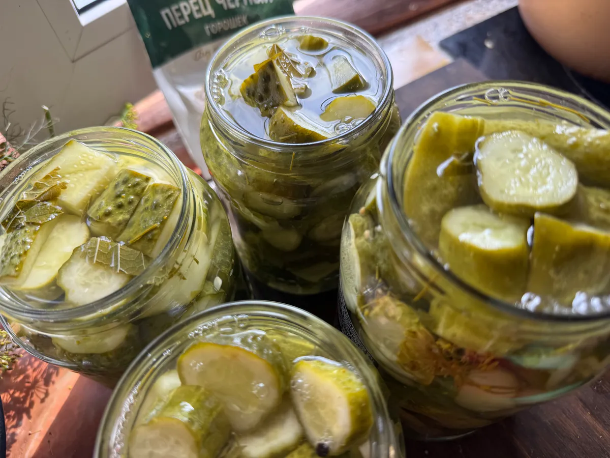 Домохозяйки собирают на огородах последние огурцы и делятся рецептами маринада и соленья. Автор Дзен-канала «Кухня наизнанку» рассказала, что нынешней осенью засолила уже 27 банок огурцов по особенному рецепту. Они получаются в меру резкими и ароматными, но что больше всего любят домочадцы - хрустят, когда их ешь.