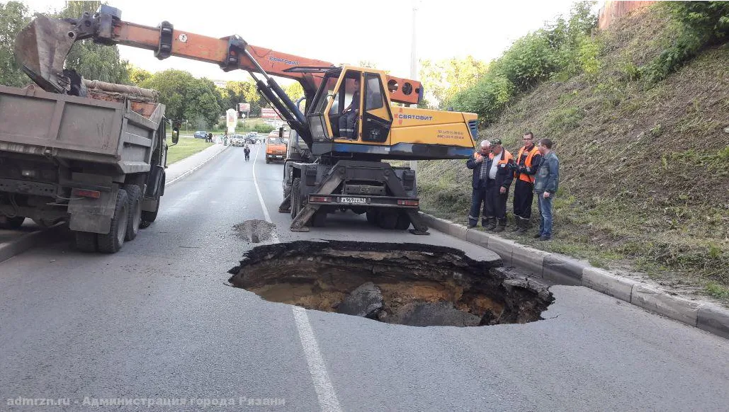 Вчера, 27 июня, в Рязани провалился асфальт около улицы Кремлевский вал