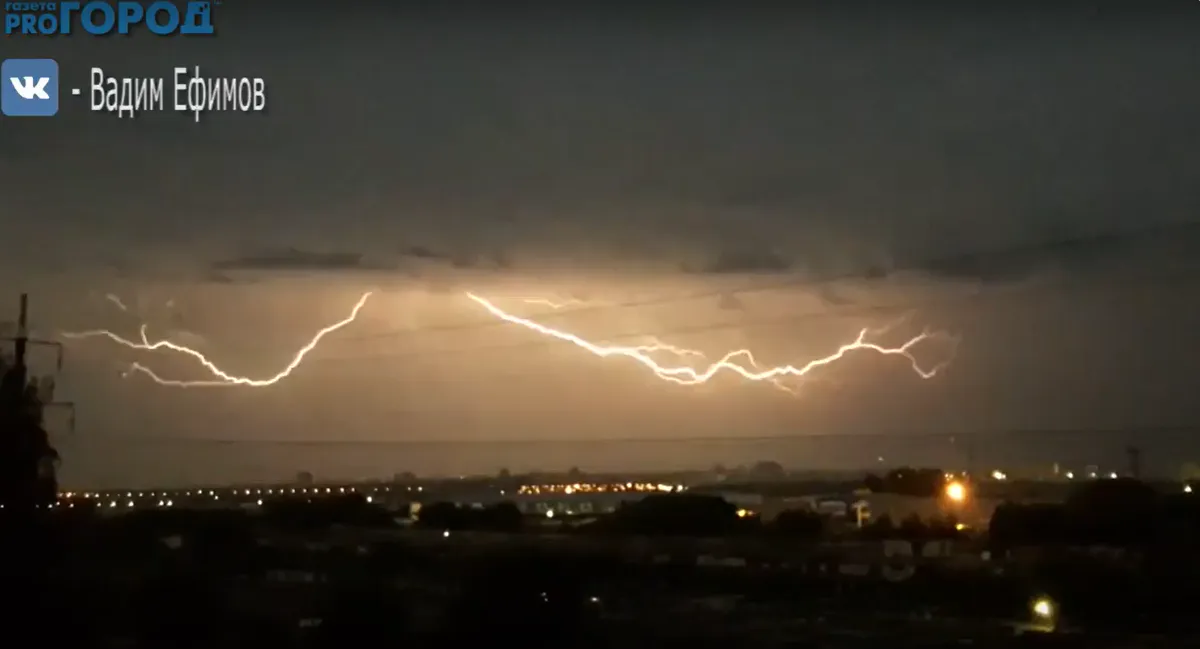 Видео вчерашней молнии в Рязани опубликовано в соцсетях