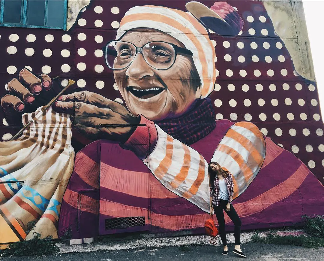 Гигантский портрет смеющейся старушки появился в Красноярске. И если местные жители не всегда знают, кто это, то вот рязанцы абсолютно точно узнают эту женщину ;)