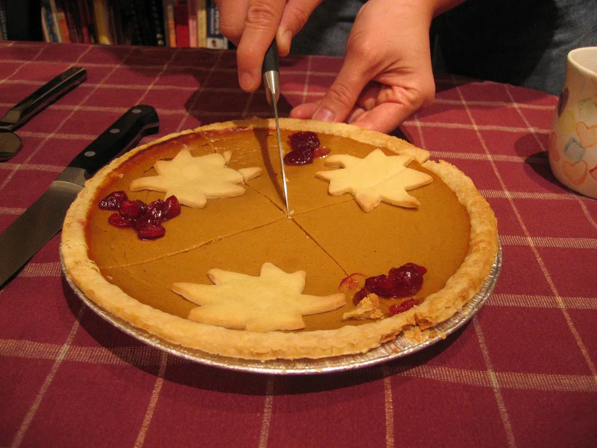Для ровных кусочков используйте обычную нитку: просто протяните её через пирог — ничего не прилипнет и не сломается.
