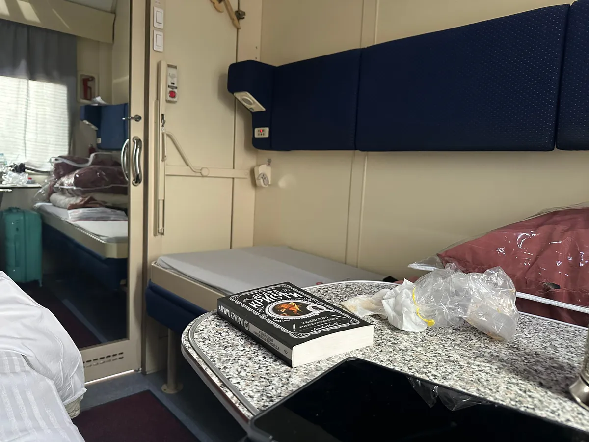 Автор Дзен-канала Книжный клуб авантюристов Юлии Батуриной, опытная путешественница, предпочитающая для длинных маршрутов уединение женского купе, отправилась на книжный фестиваль. Её неизменный спутник в дороге — книга. В этот раз это было бумажное издание, так как электронная книга вышла из строя.