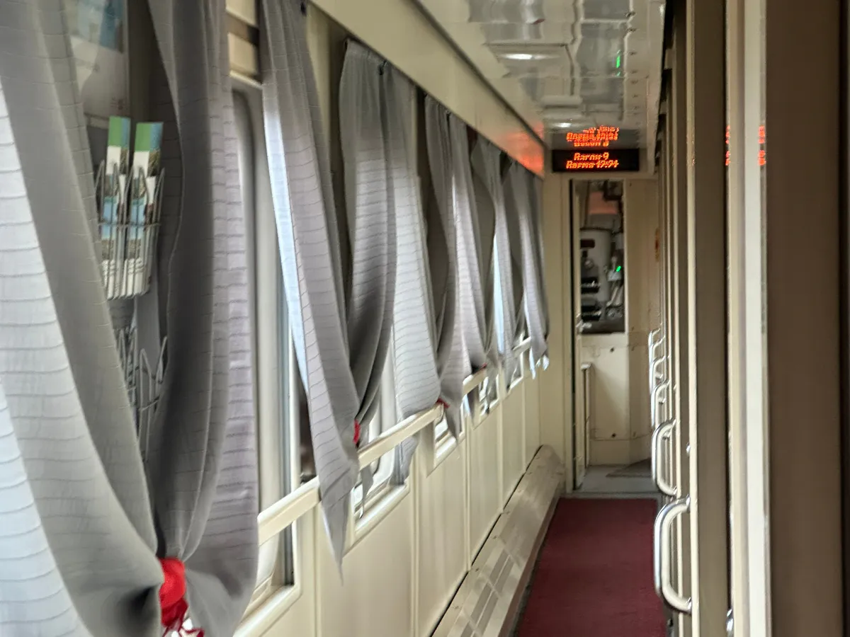 Недоработанная мультимедиа: в телевизоре по-прежнему скромная подборка контента, в основном старые фильмы. Для вагона класса люкс это странно, особенно на фоне других вагонов того же поезда с богатыми медиатеками.