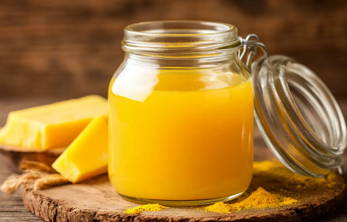 Слишком яркий цвет. Настоящее топлёное масло обычно имеет нежный кремовый или светло-жёлтый оттенок. Цвет этого масла был непривычно ярким, насыщенно-жёлтым.