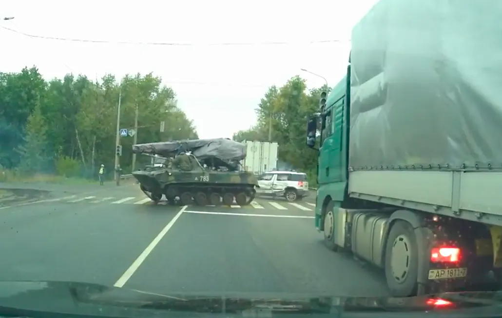 Момент столкновения боевой машины и легковушки попал на видео. Оно опубликовано в группе  "Подслушано у водителей Рязани"