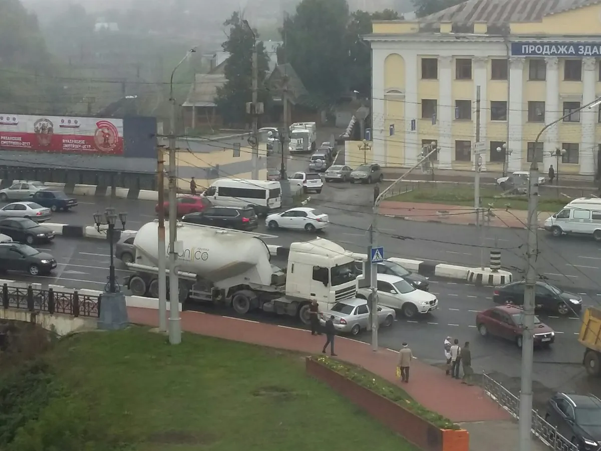 В центре Рязани фура снесла легковушку