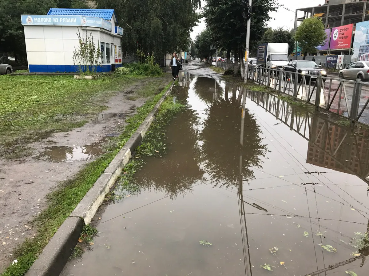 В рязани на улице Чкалова образовались большие лужи. Рязанец выложил снимки затопленной после дождя улицы в группе "Рязань".