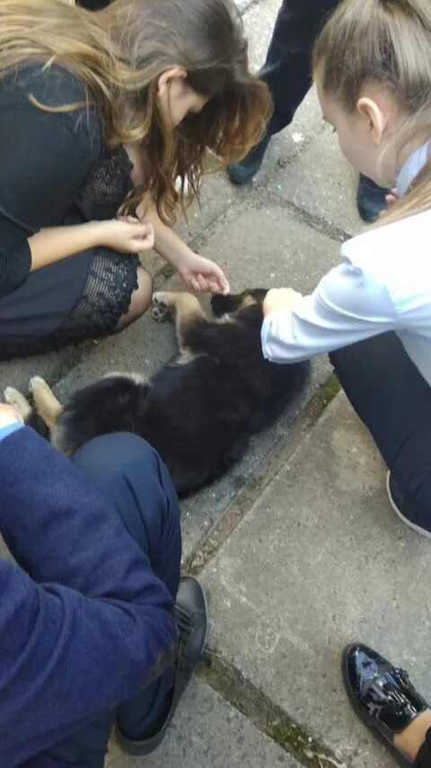 Пользователи социальной сети стали бурно обсуждать эту новость. Выяснилось, что ученики не один раз впускали щенка в школу.