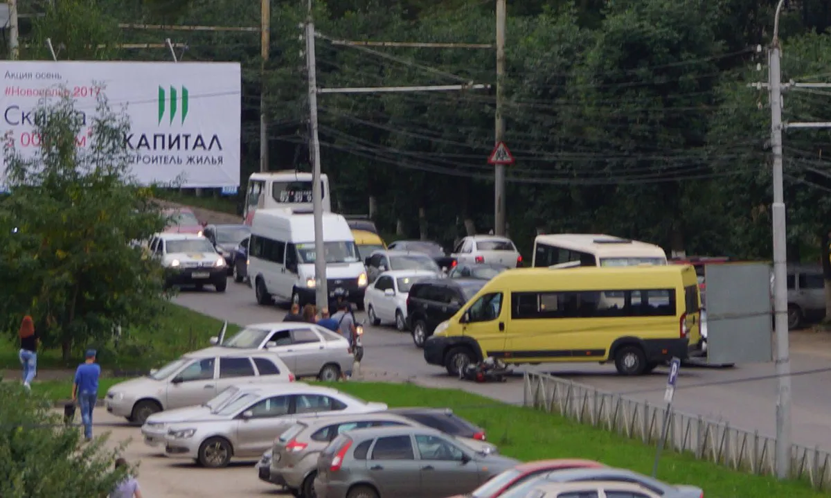 ДТП произошло с участием маршрутки. По словам рязанца, на месте стала образовываться пробка.