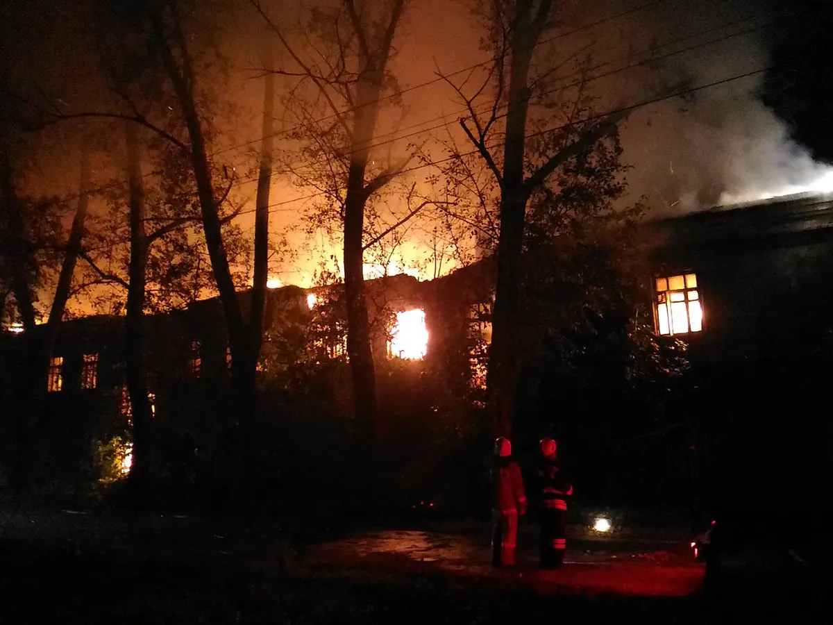 Огнём уничтожена кровля, повреждено здание по всей площади, Пострадавших нет, отмечает пресс-служба ведомства.