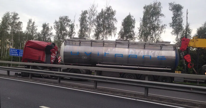 В четверг, 21сентября, на трассе М5 произошло серьезное ДТП - столкнулись две фуры. Очевидцы разместили фотографии с места аварии в группе "Подслушано у водителей Рязани".