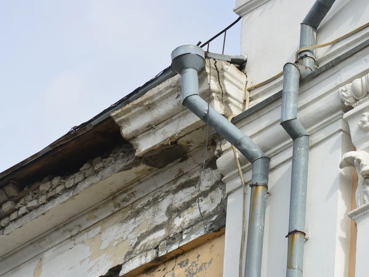 Дом с обвалившейся штукатуркой на Соборной не могут восстановить уже три недели