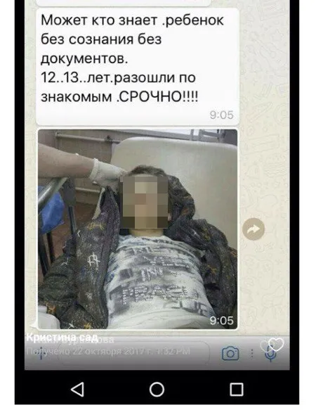 Пользователи социальных сетей и мессенджеров почти по всей России на прошлой неделе получили сообщение о мальчике 12-13 лет, которого нашли без сознания на улице. Подростка якобы доставили в больницу. К посланию была прикреплена и фотография ребенка. Такое сообщение получила и рязанка Кристина Алешина (имя по просьбе девушки изменено).