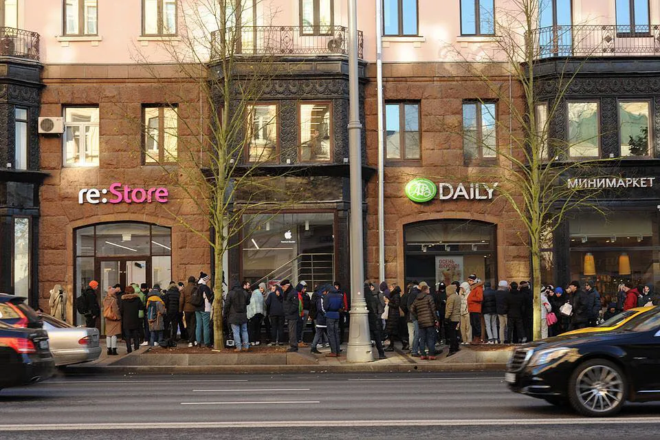 Старт продаж iPhone X в России начался с гигантской очереди в re:Store