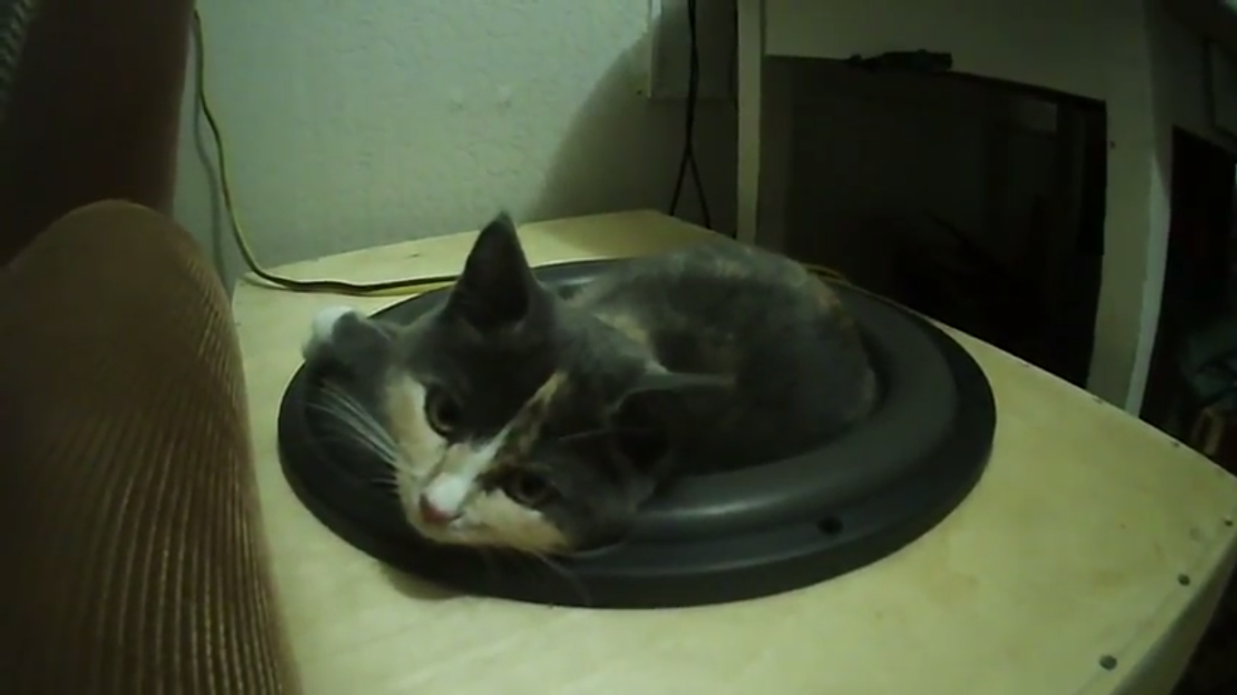 Пользователь Youtube под дико креативным ником "Интересный Контент" опубликовал новое видео. По всей видимости, на кадрах - новый вариант использования автомобильного сабфуфера, в качестве массажного кресла для вашего кота. Ну, даже так использовать его разумнее, чем для прослушивания странных басов вместо музыки.
