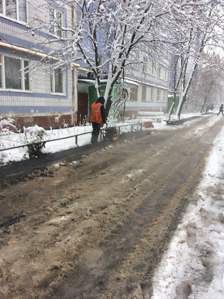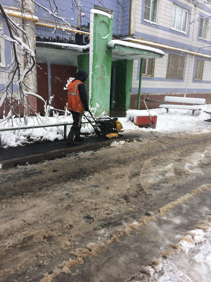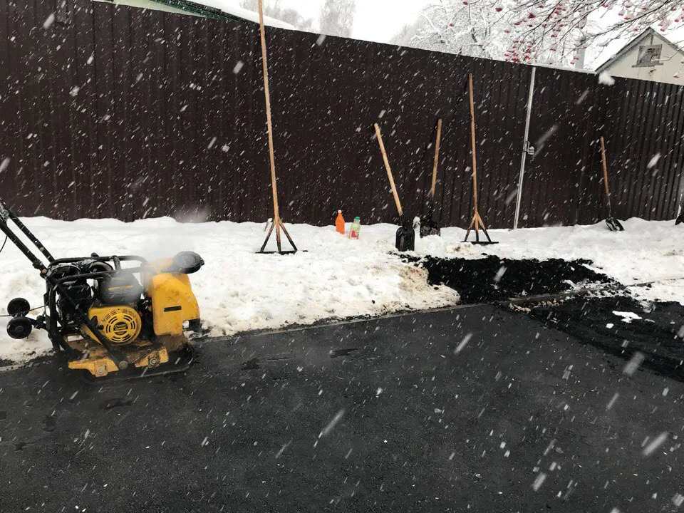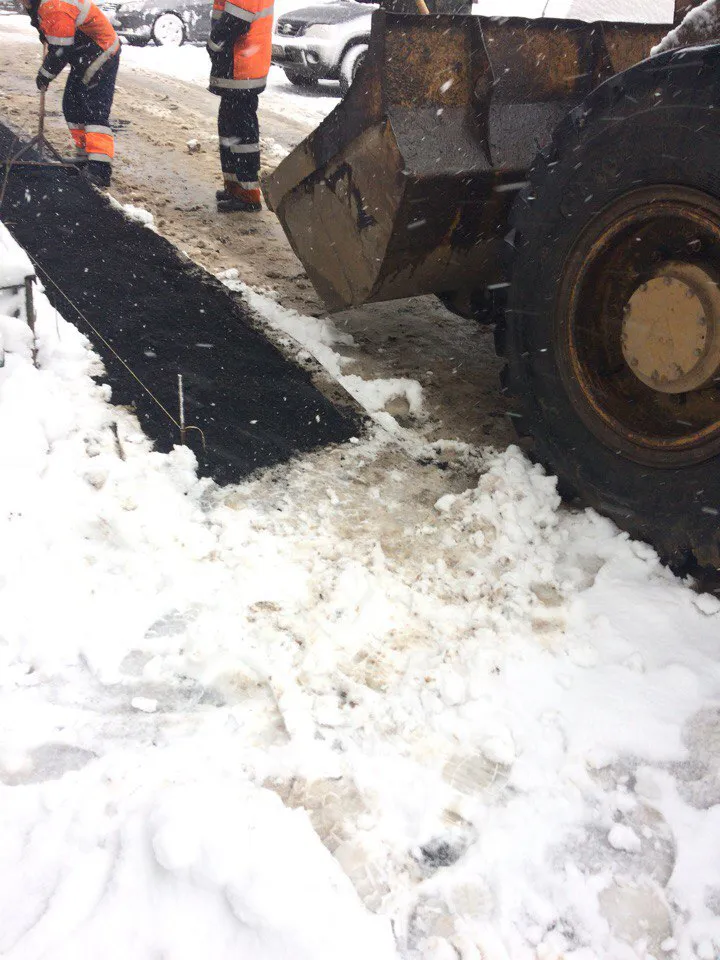 Улица Бирюзова, дом 29, корпус 1 . Асфальтируют наш двор в такую метель!, - пишет автор снимков Галина Куликова.
