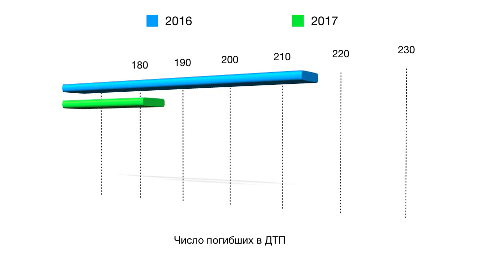 Из-за превышения скорости произошло: 152 ДТП (на 40,4% меньше, чем в 2016), в которых 24 человека погибли и 184 - ранены.