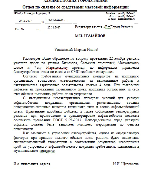Согласно требованиям муниципальных контрактов, на подрядную организацию возлагается ответственность за выполненные работы и накладываются гарантийные обязательства сроком 4 года. При выявлении дефектов на протяжении гарантийного срока, подрядная организация за свой счет обязана выполнить работы по их устранению.