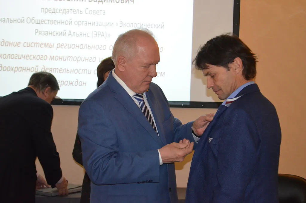 Председателю "Экологического Рязанского Альянса" Евгению Рыбакову вручили медаль за создание системы регионального общественного экологического мониторинга и организацию природоохранной деятельности с широким участием граждан. Рыбаков упомянул о различных традиционных проектах Эры, таких как "Большая уборка" и акции раздельного сбора, и о новых проектах, таких как совместный с фондом "ПроДетство" проект "Добрые крышечки" и проект установки контейнеров для раздельного сбора в городе.