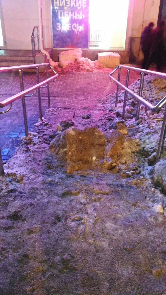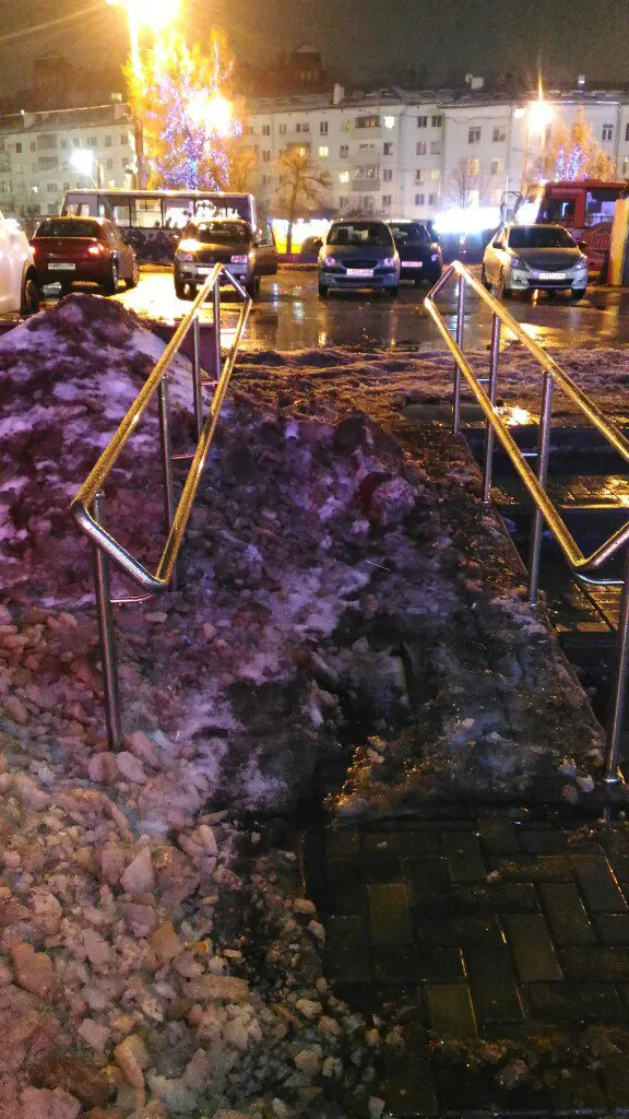 Фотографии засыпанного снегом и абсолютно непроходимого пандуса на Театральной площади опубликовала Ирина Евсеева в группе "Типичная Рязань".