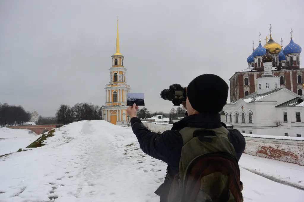 Фотопроект Александра Синицына «Настоящая Рязань» завораживает: фотографии хочется внимательно рассмотреть, изучить и навсегда сохранить в памяти, ведь в каждом снимке совмещается сразу несколько десятилетий. Как ему это удается? На первый взгляд очень просто. Александр «накладывает» старые фотографии города на современную, живую Рязань. Получившиеся снимки помогают лучше узнать и понять историю нашего города. Я решила пообщаться с Александром и понаблюдать за его работой. Оказалось, что он не только фотограф, но еще и журналист, скульптор, активист и просто интересный собеседник.