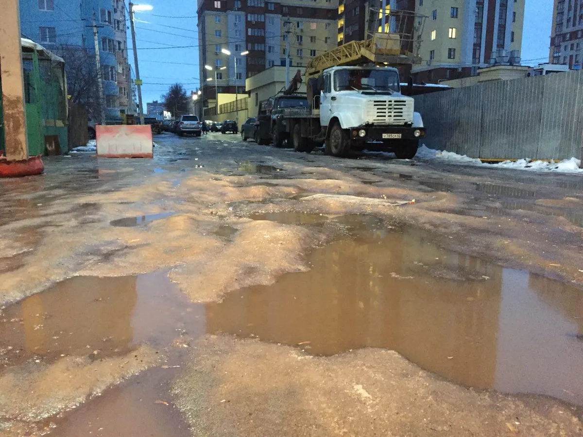Особенно удивительно, что такая дорога находится в пяти минутах ходьбы от одной из центральных площадей города - площади Победы, а ведет она к дорогим новостройкам.