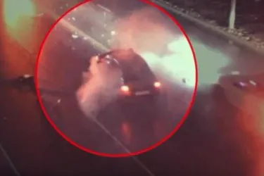 На записи видно, что сначала один автомобиль влетел в заднюю часть другому. После этого в стоящий автомобиль врезался внедорожник.