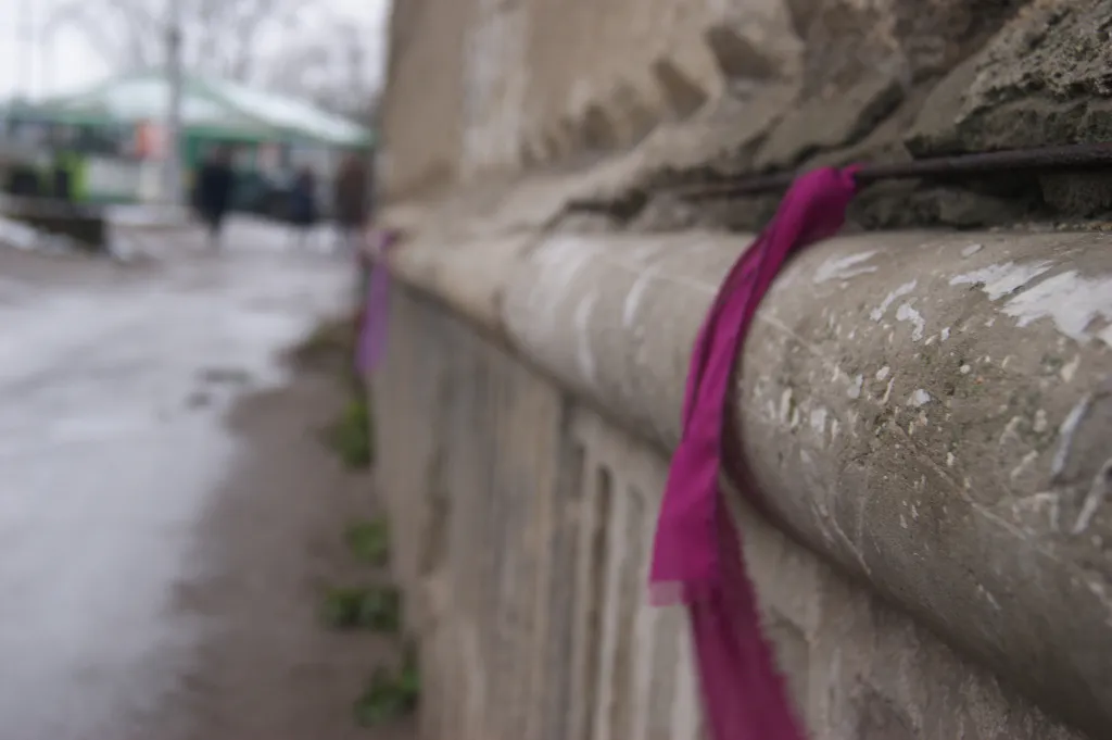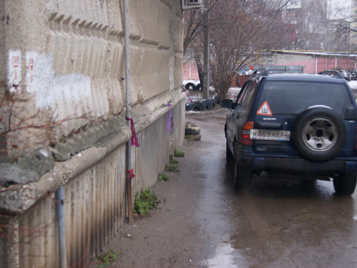 Плотный поток автомобилей движется настолько близко к дому, что даже сбивает на нем лепнину. Местные жители уже обозначили это место яркими тряпичными лентами, чтобы край дома был лучше виден, но это не особо помогает.