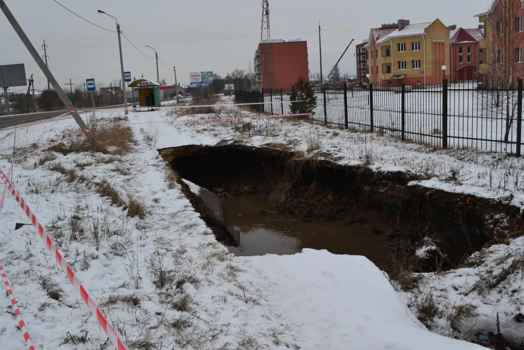 В воскресенье, 14 января, в селе Дядьково провалился грунт из-за аварии на канализационном коллекторе. Яма образовалась возле жилого комплекса "Радужный".