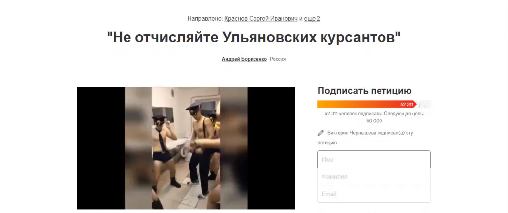 В сети уже создана петиция, в которой авторы просят не отчислять курсантов. На момент публикации материала ее подписали уже больше 42 000 человек.